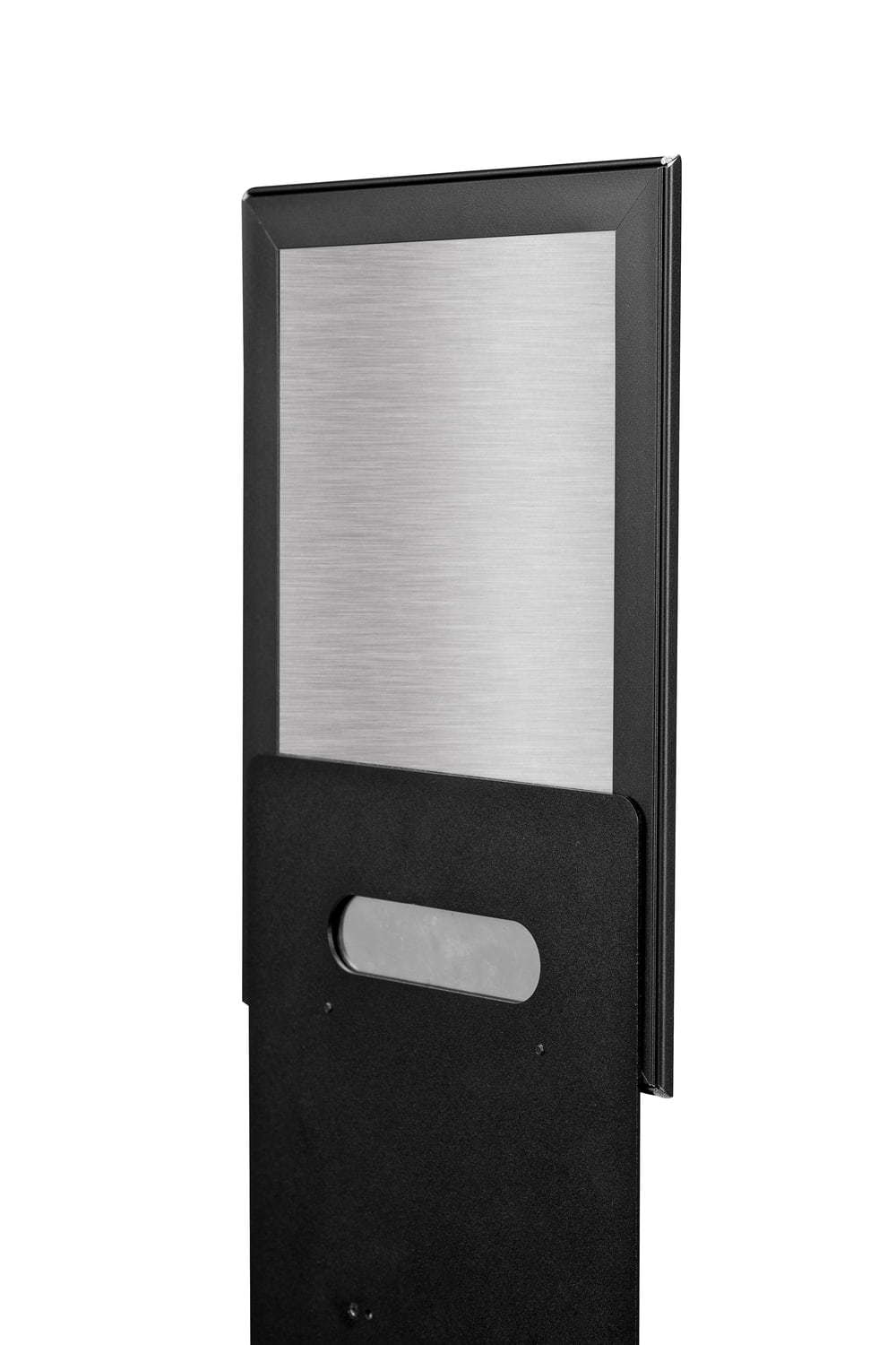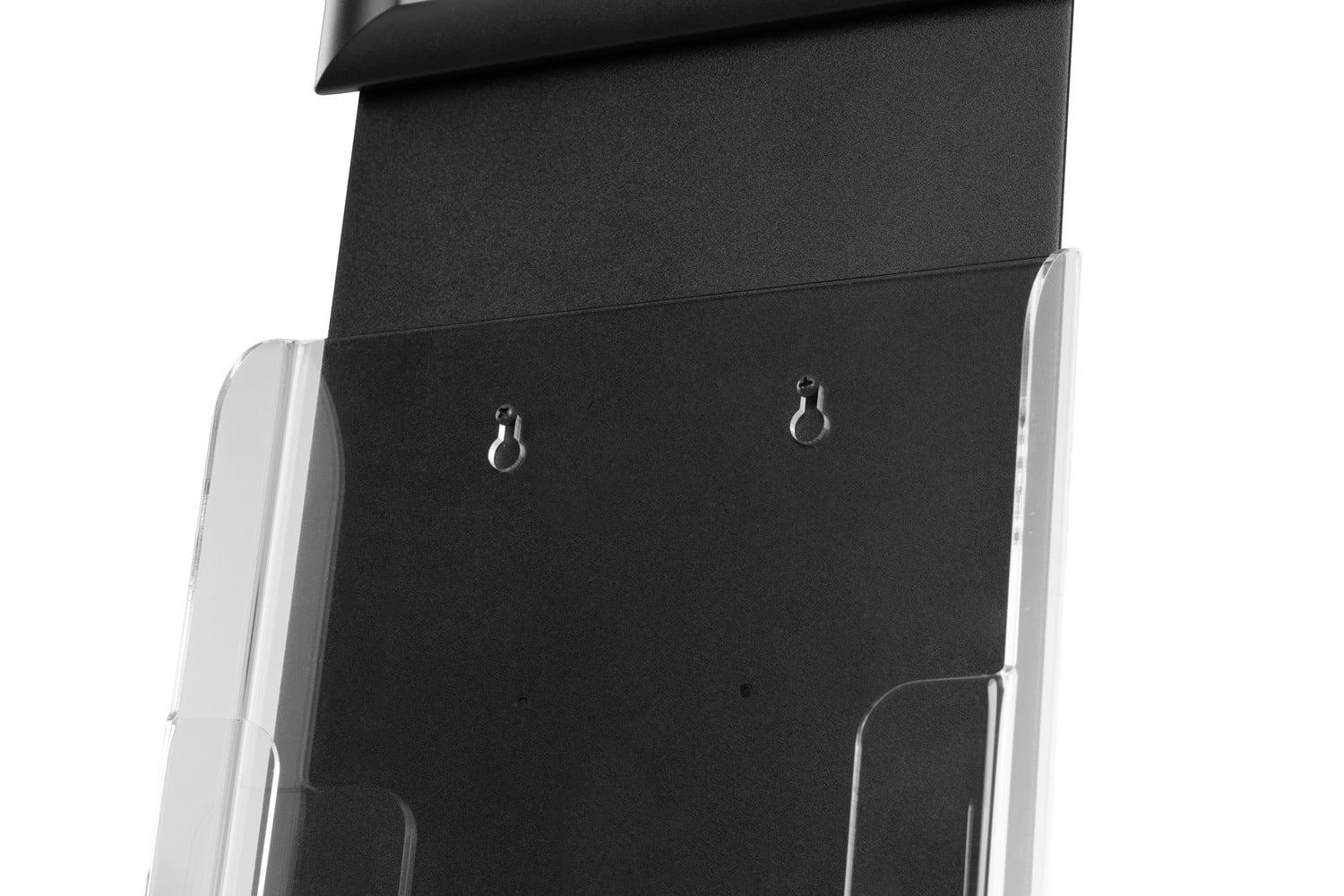 Virginia to stojak na ulotki/katalogi wykonany z masywnego metalu malowanego proszkowo na kolor czarny mat. Dodatkowym atutem tego stojaka jest zintegrowana tabliczka informacyjna typu OWZ. Kieszeń na ulotki wykonana z bardzo grubego materiału akrylowego i przeznaczona do formatów max A4.